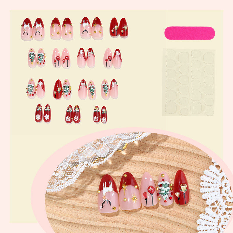 3D Reindeer Forest Press-On Nails –Short ALMOND |30 PCS Set