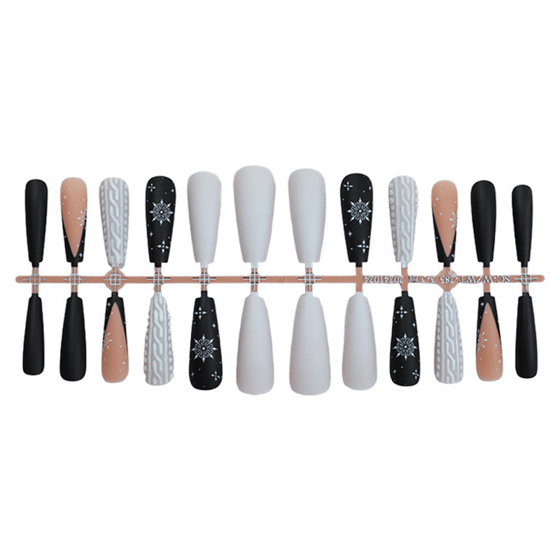 Frosted Black Winter Press-On Nails–long Ballet | 24 PCS Set